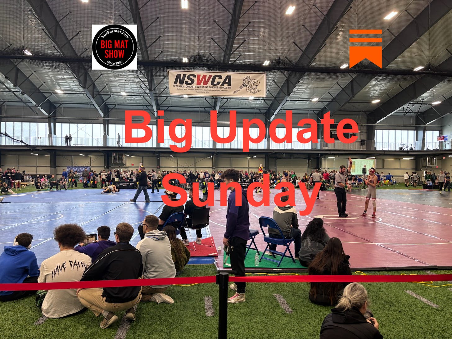 Playback speed×Share postShare post at current timeShare from 0:000:00/0:00Paid episodeThe full episode is only available to paid subscribers of Huskermat’s SubstackSubscribe to watchWeekend Review 1/11/26Much to Discuss After the Week that WasHuskermatJan 11, 2026∙ Paid5ShareTopics-Our 10 Best Performances of the Week-Latest on Husker HWT Situation-Weekend Notes-Look Ahead to Next WeekListen to this episode with a 7-day free trialSubscribe to Huskermat’s Substack to listen to this post and get 7 days of free access to the full post archives.Start trialAlready a paid subscriber? Sign inHuskermat’s Substack PodcastCreative analysis and content for HS wrestling in Nebraska. We've been doing this since 1999!Creative analysis and content for HS wrestling in Nebraska. We've been doing this since 1999!SubscribeListen onSubstack AppRSS FeedAppears in episodeHuskermatRecent EpisodesClasses C&D State Tournament Wrap UpFeb 24 • HuskermatState Tournament Wrap-Up A&BFeb 23 • HuskermatClass D Bracketology 2026Feb 18 • HuskermatClass C Bracketology 2026Feb 17 • HuskermatClass B Bracketology 2026Feb 17 • HuskermatClass A Bracketology 2026Feb 16 • HuskermatDistrict Wrap Up 2/15/26Feb 15 • HuskermatDistrict Super Preview 2026Feb 12 • Huskermat